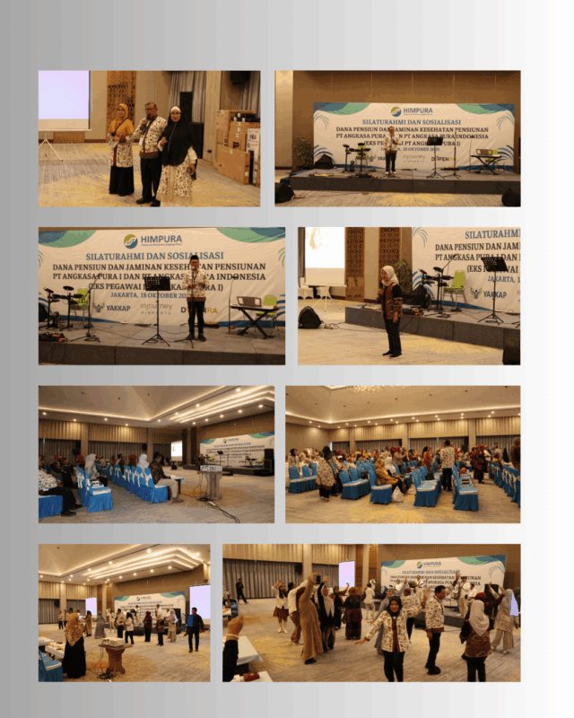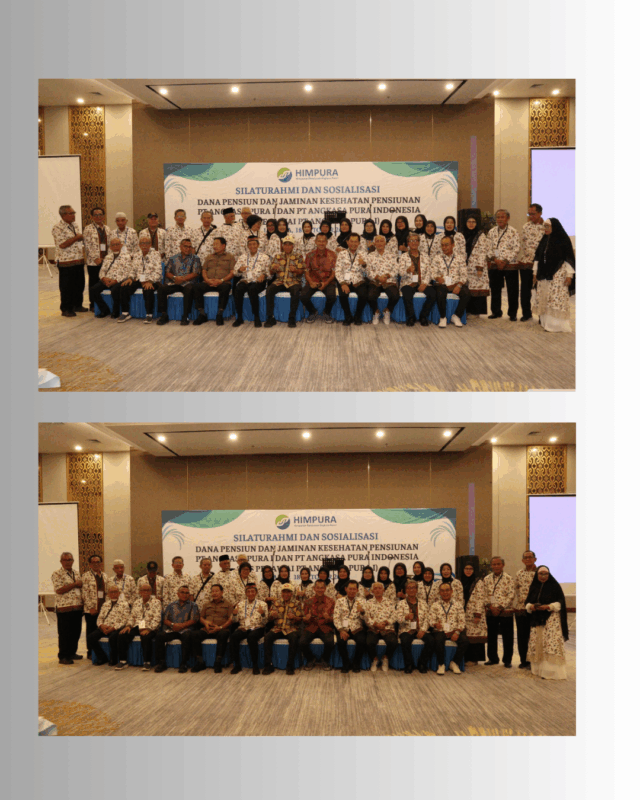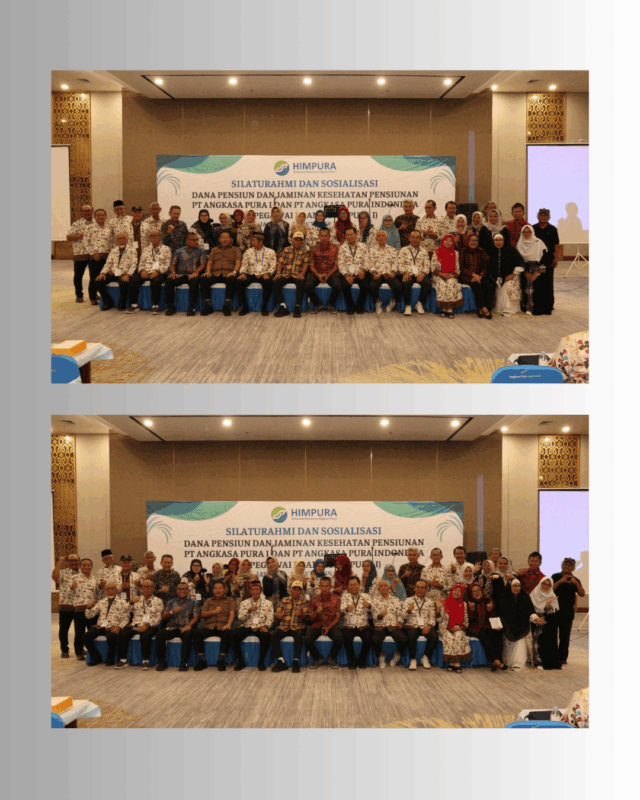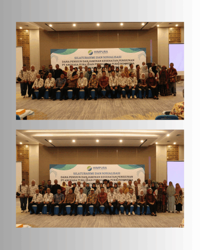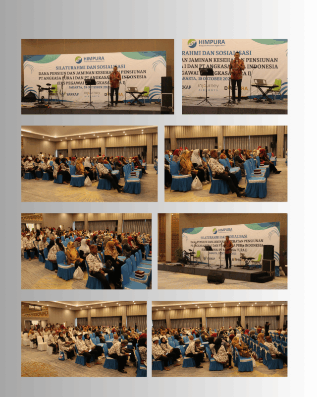 Jakarta, 18 Oktober 2025, Bismillaahirrahmaanirrahiim, Dana Pensiun Angkasa Pura I (DAPENRA) bersama dengan Yayasan Kesejahteraan Karyawan Angkasa Pura I (YAKKAP-I) dan Himpunan Pensiunan Angkasa Pura I (HIMPURA) kantor Pusat, telah melaksanakan silaturahmi sekaligus sosialisasi tentang kinerja keuangan dan kepesertaan Dana Pensiun Angkasa Pura I (DAPENRA) dan Yayasan Kesejahteraan Karyawan Angkasa Puta I (YAKKAP-I). Dalam kegiatan ini dihadiri oleh setidaknya sebanyak 141 pensiunan yang berdomisili di JABODETABEK, Bandung serta sekitarnya. Kegiatan turut di hadiri oleh Bapak Adi Nugroho Selaku Direktur Human Capital dan Bapak Ristiyanto Eko Wibowo Selaku Direktur Teknik. Acara berlangsung dengan cukup baik dan ditutup dengan sesi foto bersama.