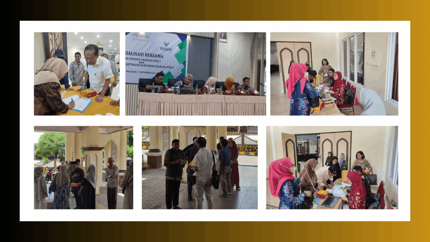 Makassar, 17 September 2025, DAPENRA bersama dengan YAKKAP mengadakan sosialisasi kepada pensiunan dan pegawai aktif di Bandar Udara Sultan Hasanuddin Makassar. Sosialisasi tersebut diikuti oleh setidaknya paling sedikit sebanyak 261 orang pensiunan dan paling sedikit sebanyak 40 orang pegawai aktif.