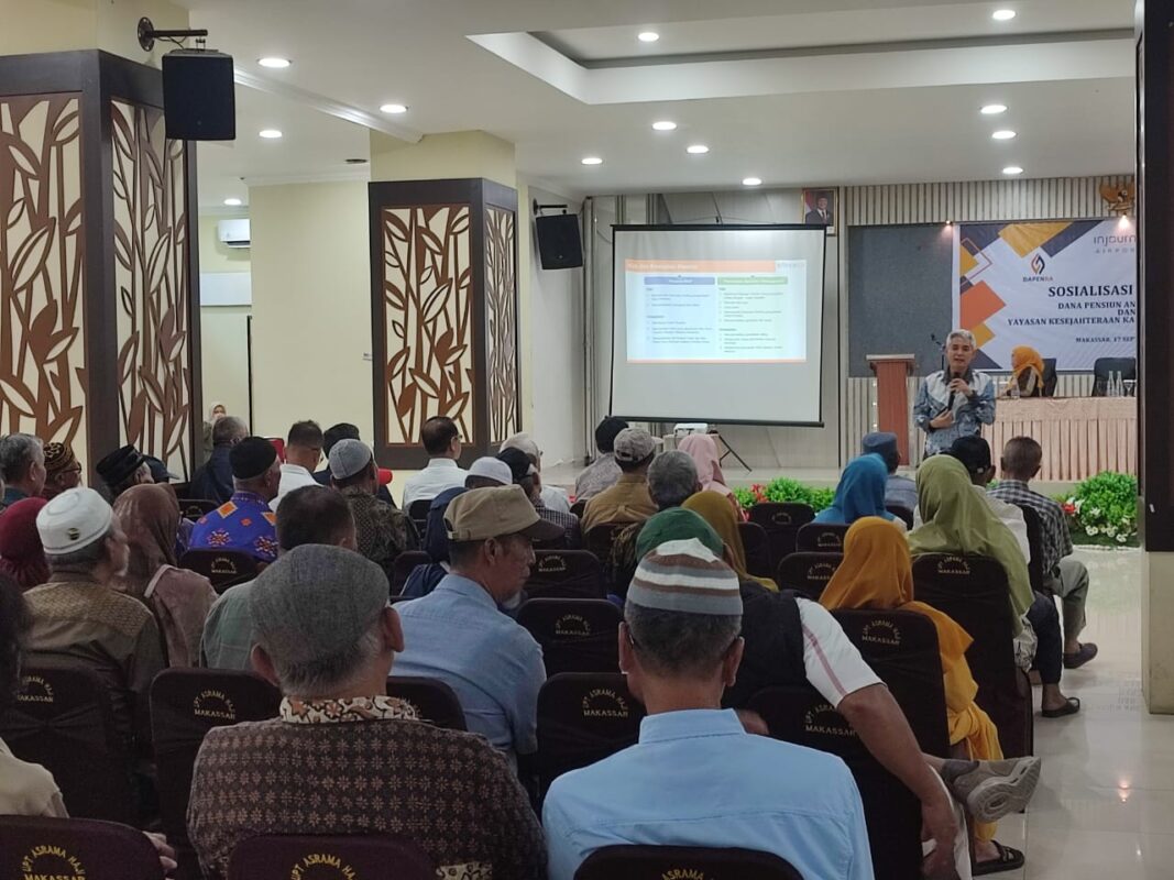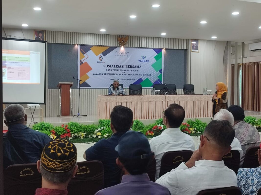 Makasar, 19 September 2025, DAPENRA bersama dengan YAKKAP mengadakan sosialisasi kepada pensiunan dan pegawai aktif di Bandar Udara Sultan Hasanuddin Makassar. Sosialisasi tersebut diikuti oleh setidaknya paling sedikit sebanyak 261 orang pensiunan dan paling sedikit sebanyak 40 orang pegawai aktif.