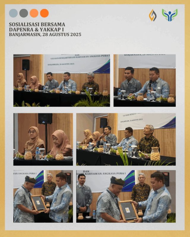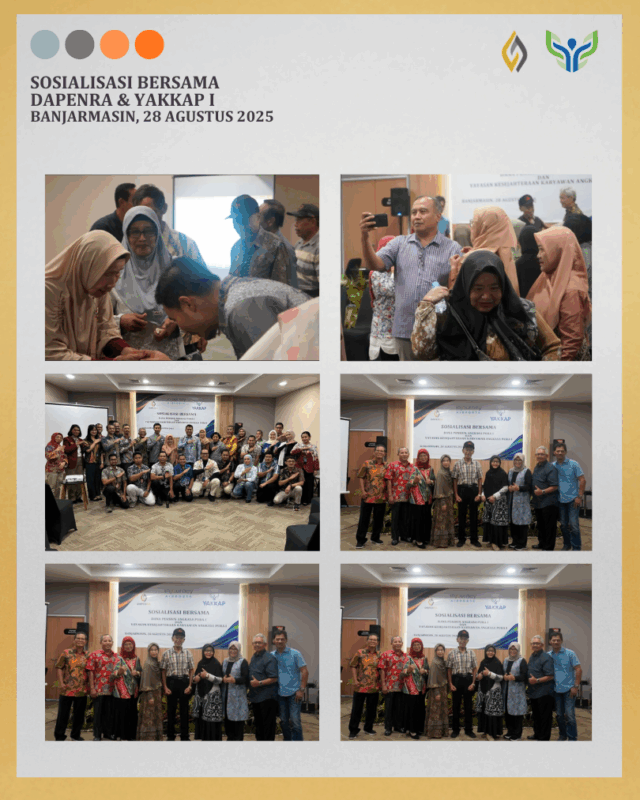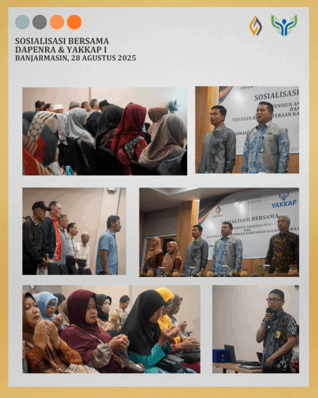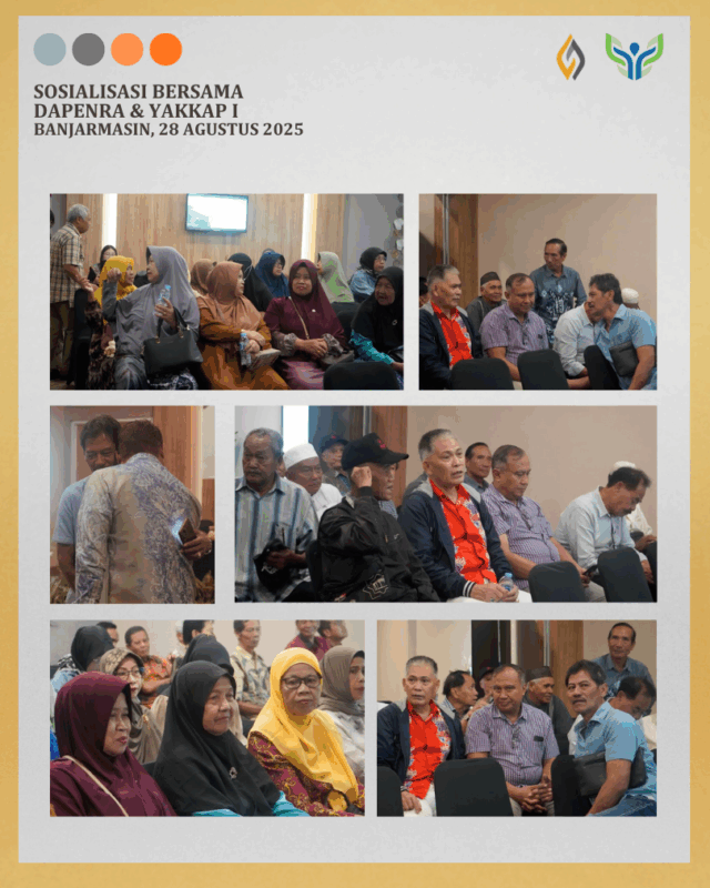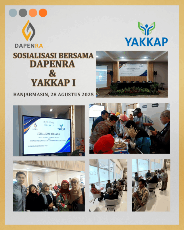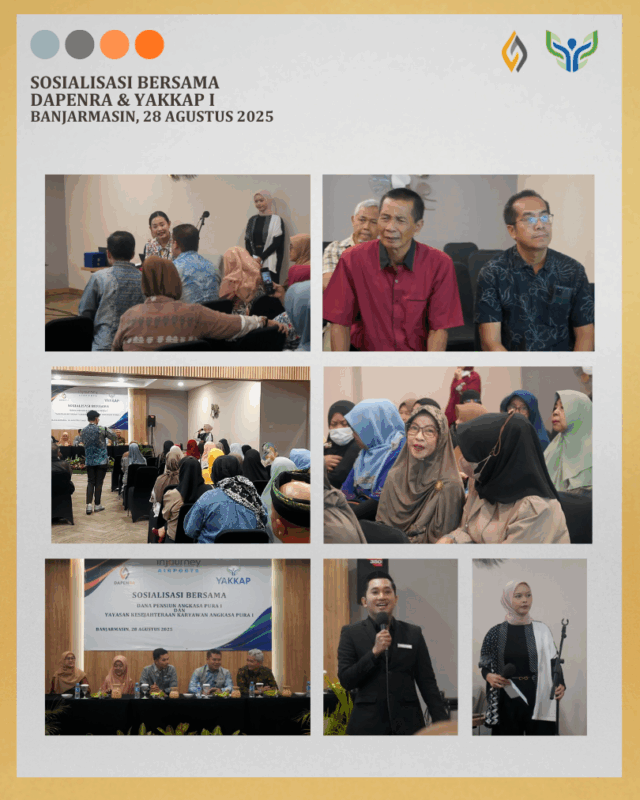 Banjarmasin, 28 Agustus 2025, Dapenra dan YAKKAP melaksanakan Sosialisasi Bersama yang dihadiri oleh 58 orang Pensiunan yang berdomisili di Banjarmasin dan sekitar, juga dihadiri oleh 34 orang Peserta Aktif (Pegawai) Angkasa Pura Indonesia cabang Banjarmasin.